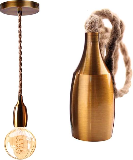 Retro Loft Vintage Chanvre Corde Pendentif Lumiere Diy Pendentif