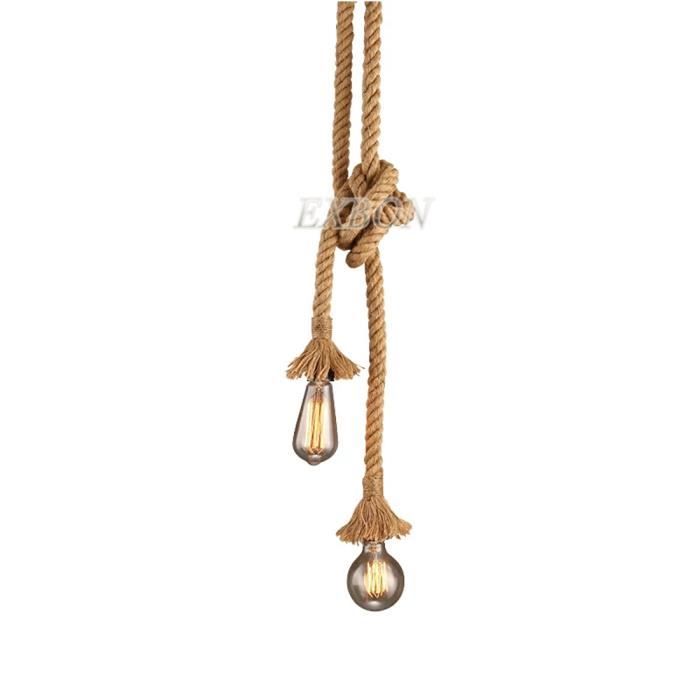 Suspension Vintage En Corde Chanvre 200cm Diy Double Douille E27