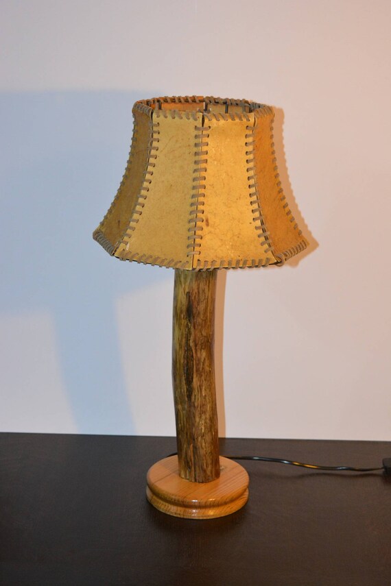 Table Lamp From A Branch With Leather Umbrella Etsy
