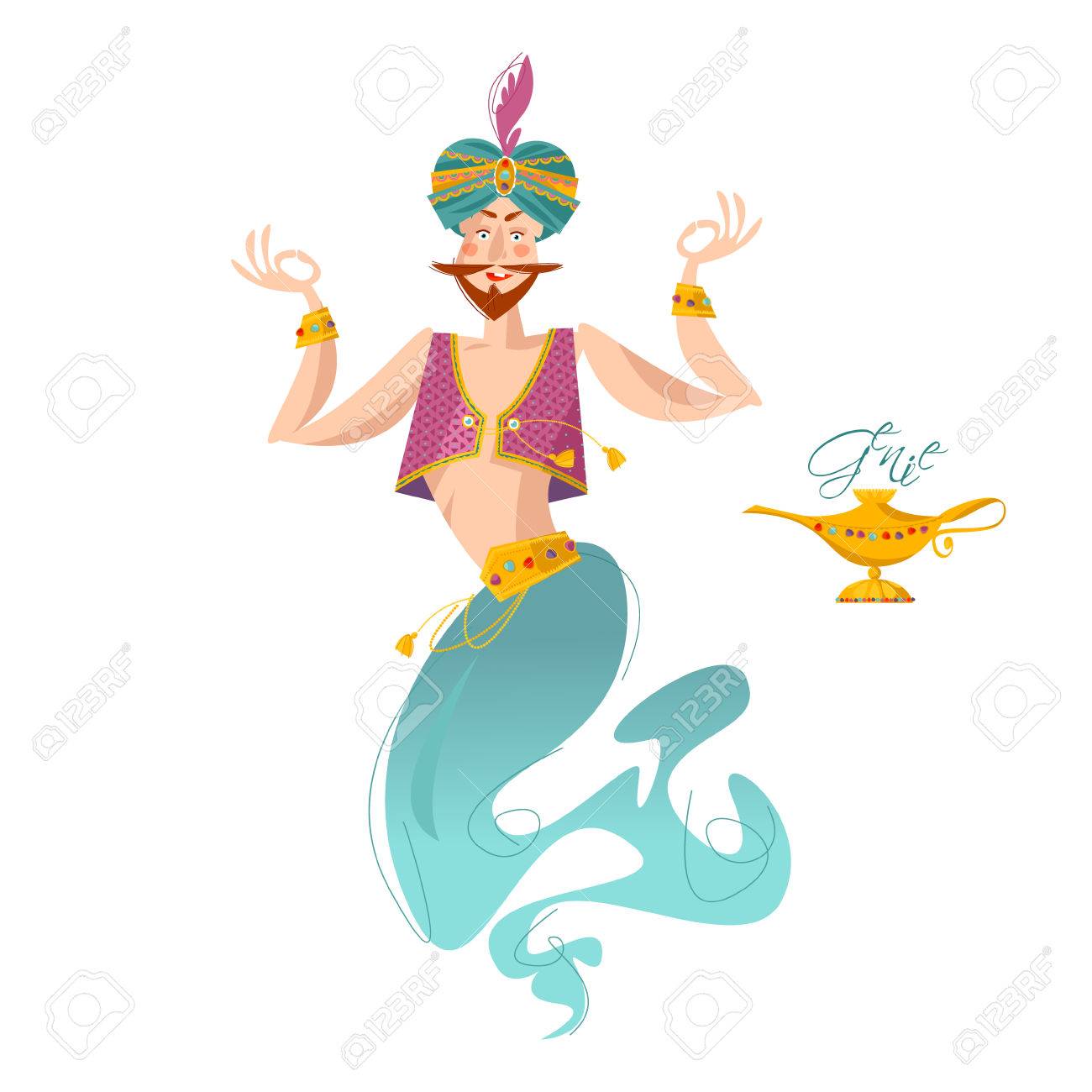 Personnage Genie De La Lampe Magique Illustration De Dessin Anime
