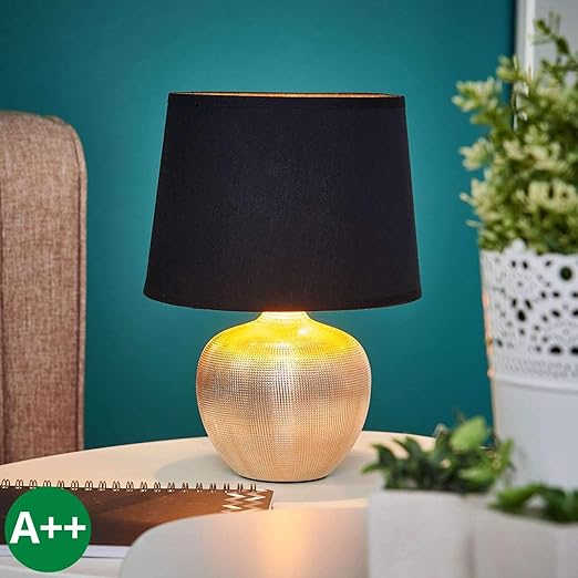 Lampe A Poser Moderne En Metal Et Tissu Noir Ines