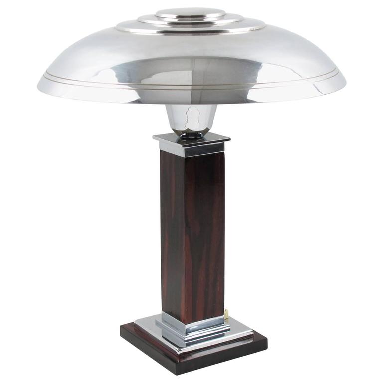 French Art Deco Chrome And Macassar Mushroom Shade Desk Table Lamp