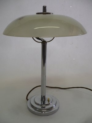 Art Deco Chromed Metal Milk Glass Table Lamp 1920s For Sale At