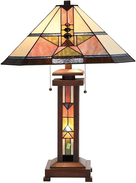 Lumilamp 5ll 5781 Art Deco Tiffany Lampe De Table Avec 2 Ampoules