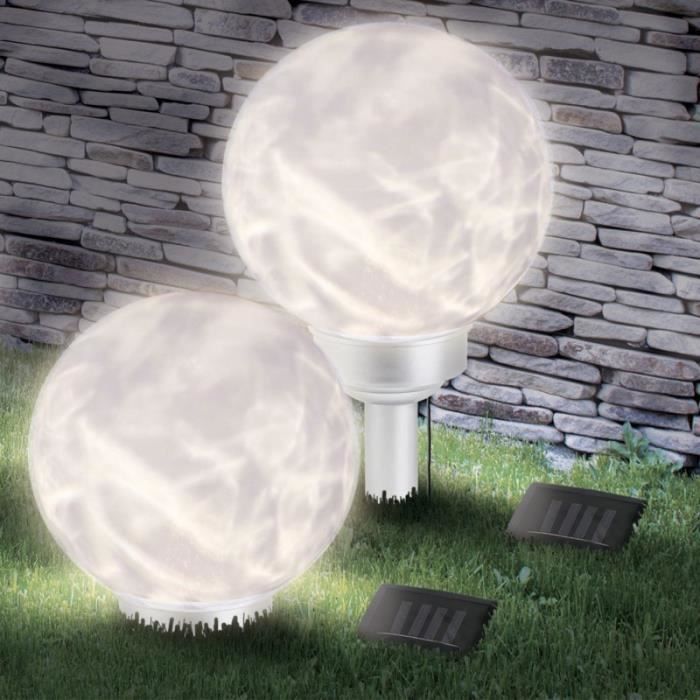 Lampe boule a energie solaire diametre 30 cm vendue en lot de 2 ideale pour baliser une allee. A poser sur socle ou a planter sur pied. Descriptif du lot de 2 lampes de jardin solaires parez votre jardin de ces 2 belles lampes design. Invitez des lumieres feeriques dans votre jardin grace a ce lot de 2 lampes de jardin solaires.