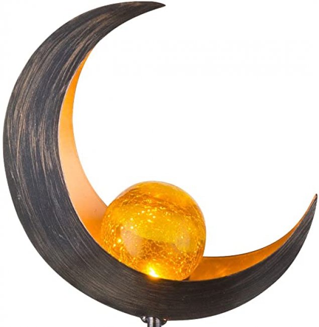 Decoration Solaire Metal Boule Verre Sur Tige Croissant