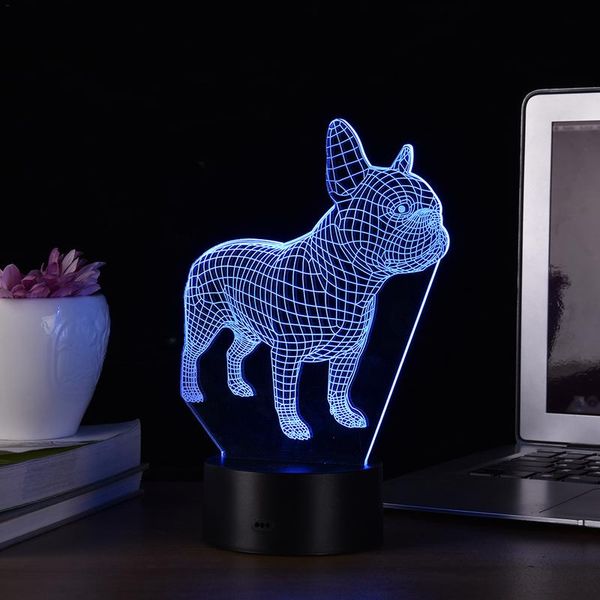 Lumiere Touch Control 7 Couleurs Change 3d Bouledogue Francais
