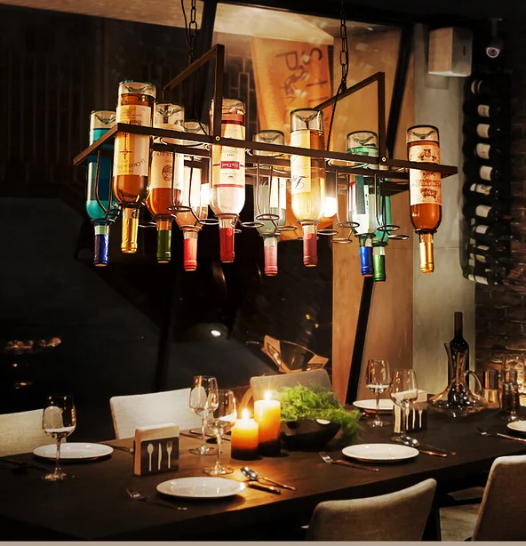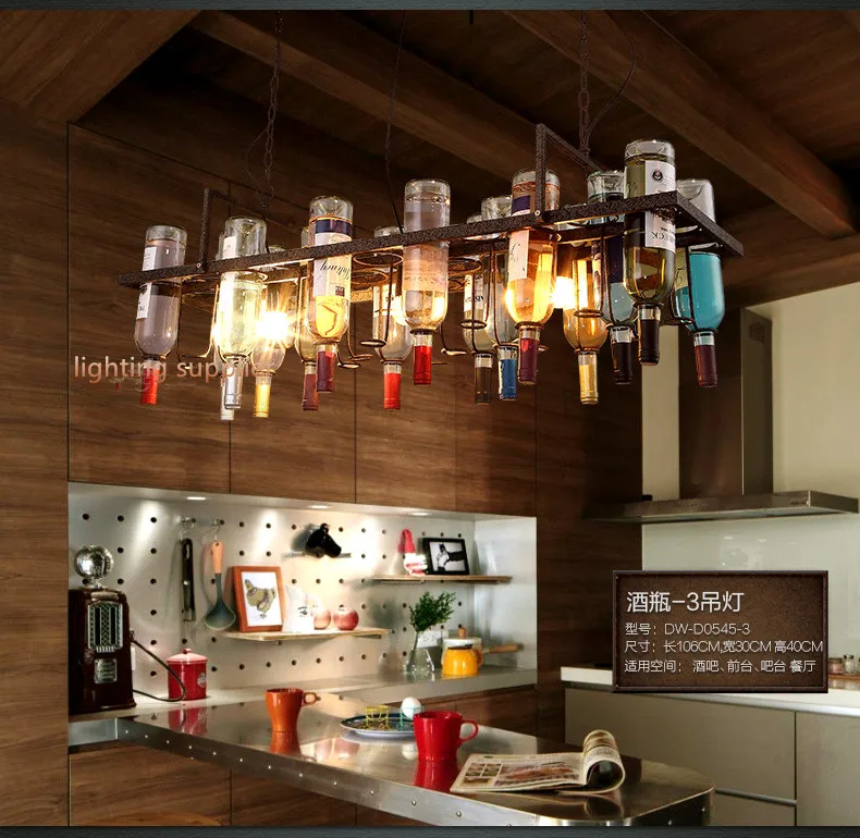 Acheter Retro Bouteille De Vin Led Pendentif Lustres Lampes Pour