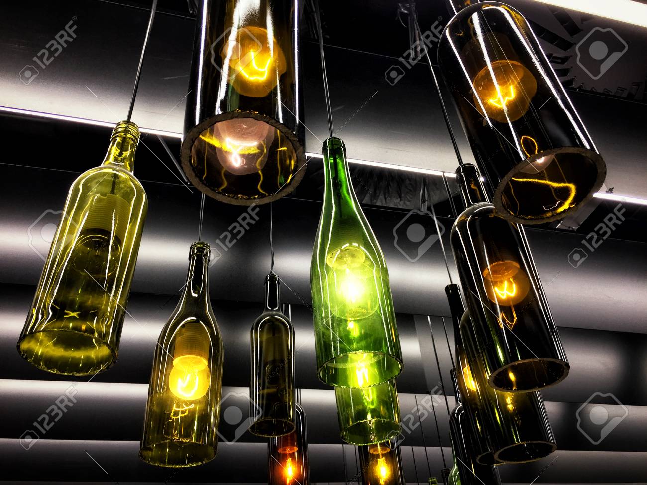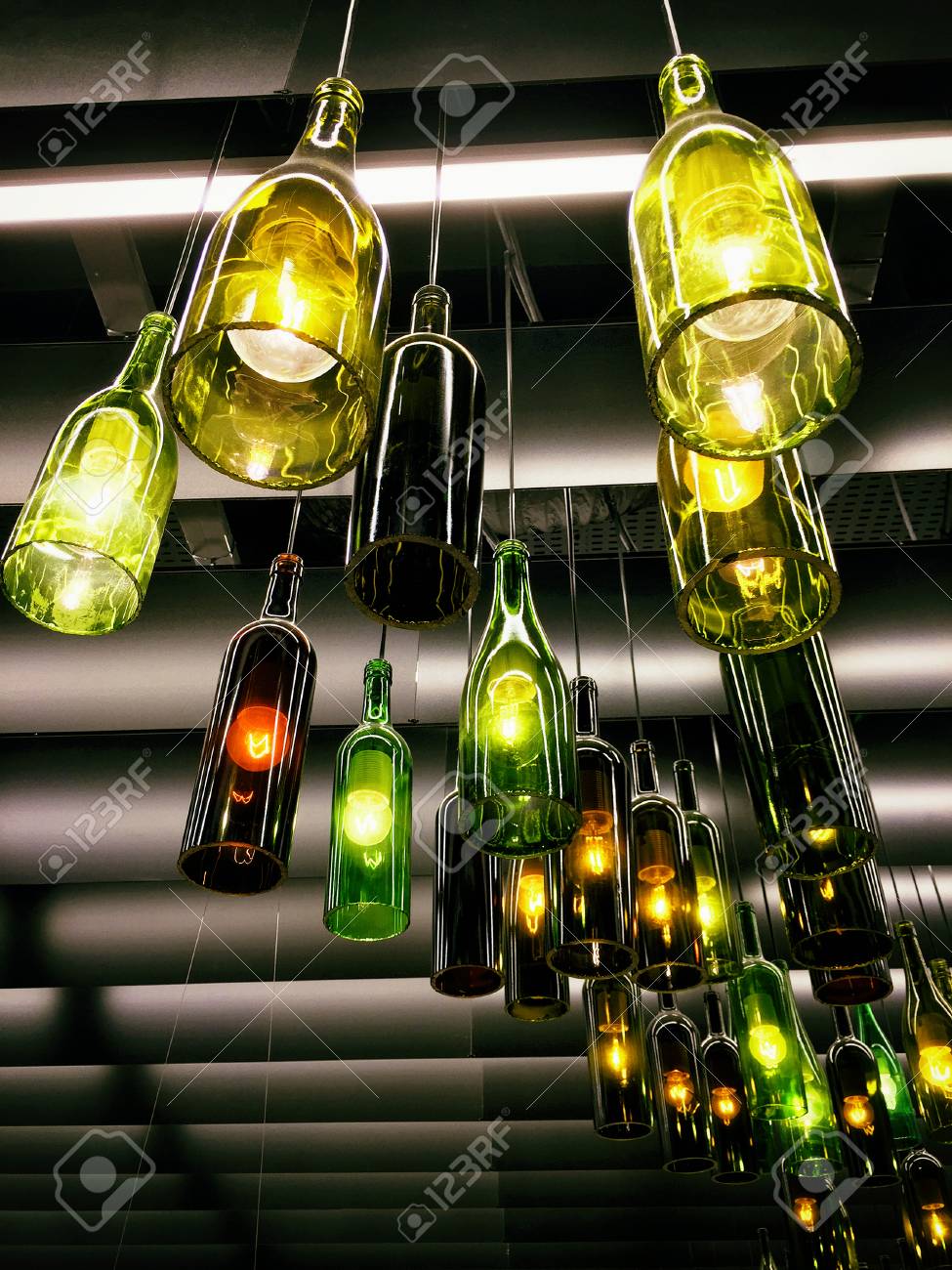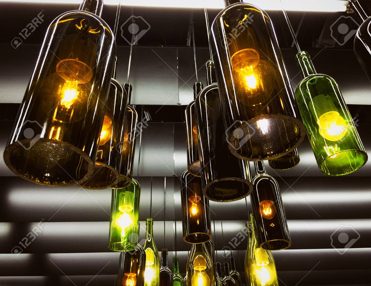 Magnifique Decor De Lampe Retro Fait De Bouteilles De Vin Vides