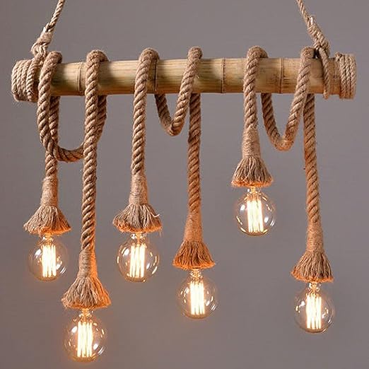 Ibalody 6 Lumieres Retro Loft Industriel Suspension Lampe Corde De