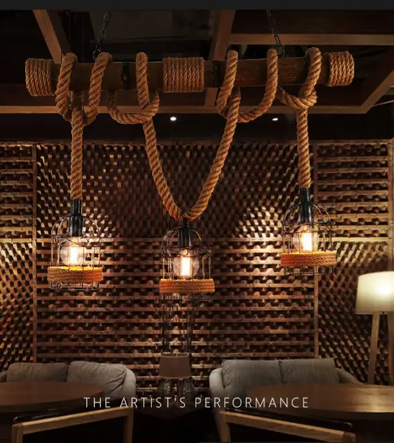 Retro Grand Lustre Chanvre Corde Cafe Lampe De Plafond Hotel