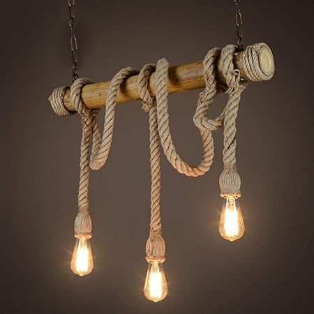 Industriel Retro Lampe Corde De Chanvre Plafond Lampe 3 Flames