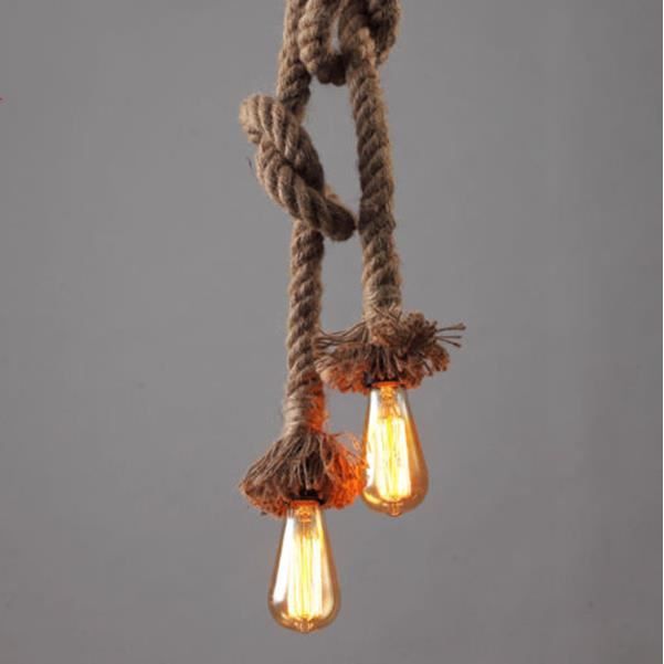 Retro Double Heads Corde De Chanvre Lampe Loft Vintage Lampe