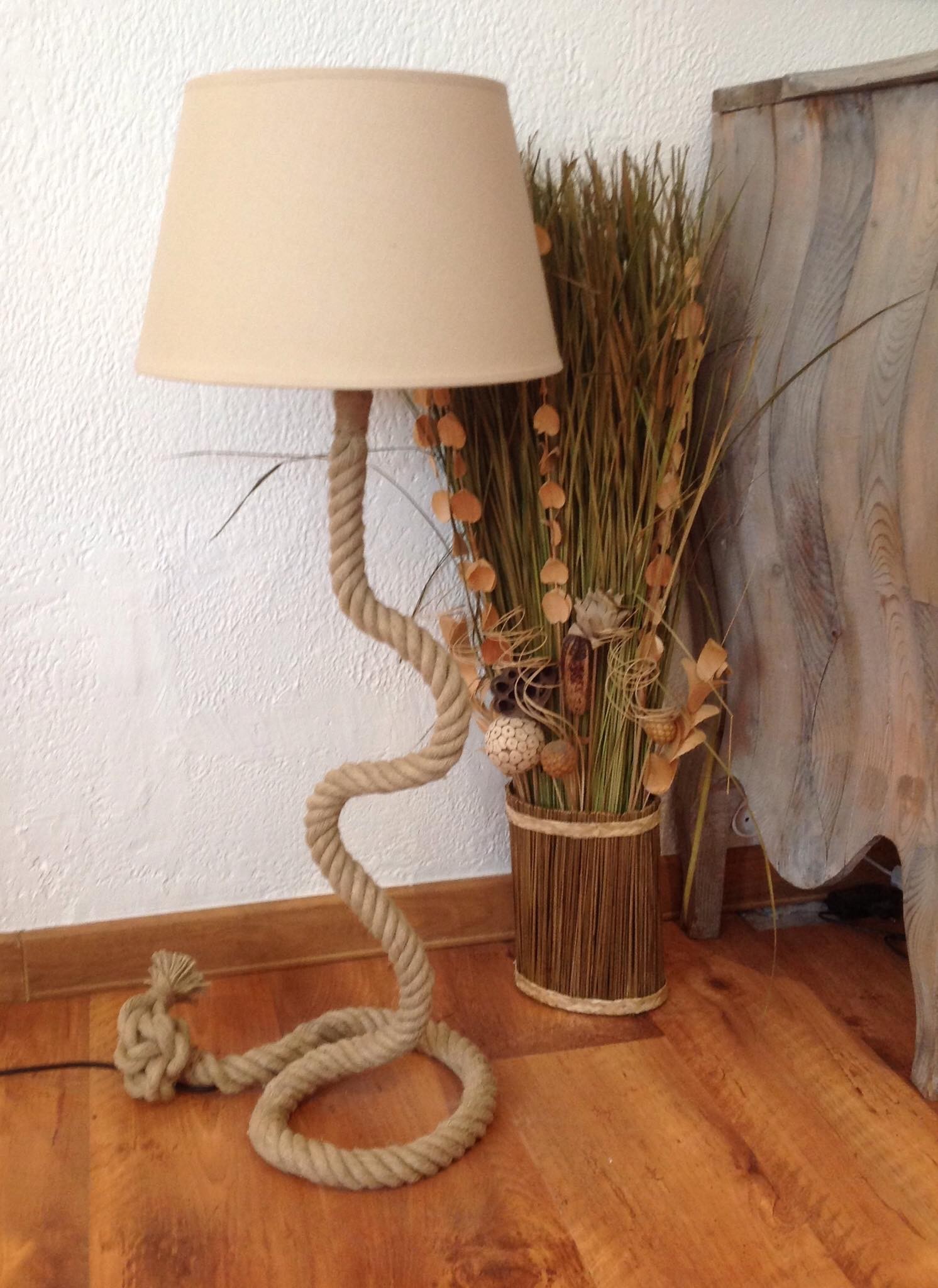 Lampe A Pied Bois Flotte Et Cordage Chanvre Cotret
