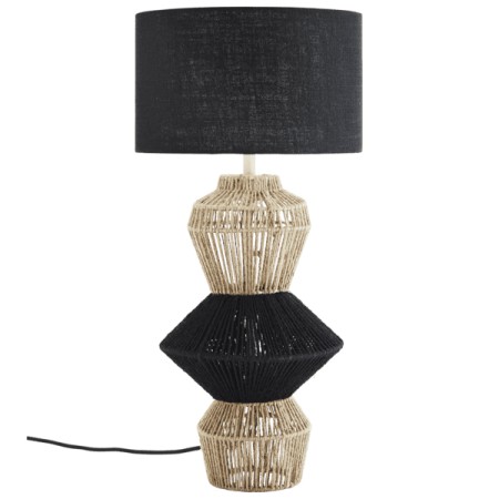 Lampe De Salon Abat Jour Lin Noir Et Superbe Pied En Jute Noir Creme