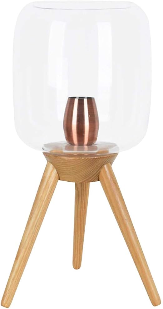 Lampe A Poser En Verre Transparent Et Socle Bois Style Nordique