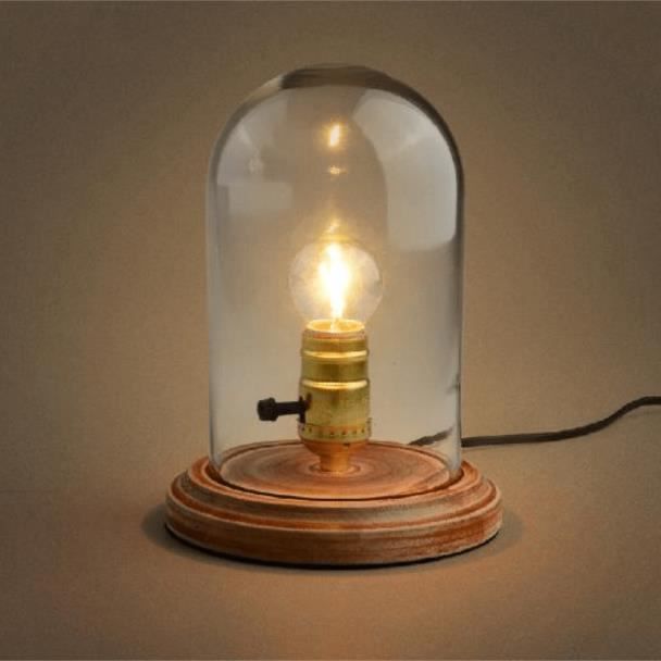 Lampe Cloche En Verre Avec Socle En Bois Clodia Achat Vente
