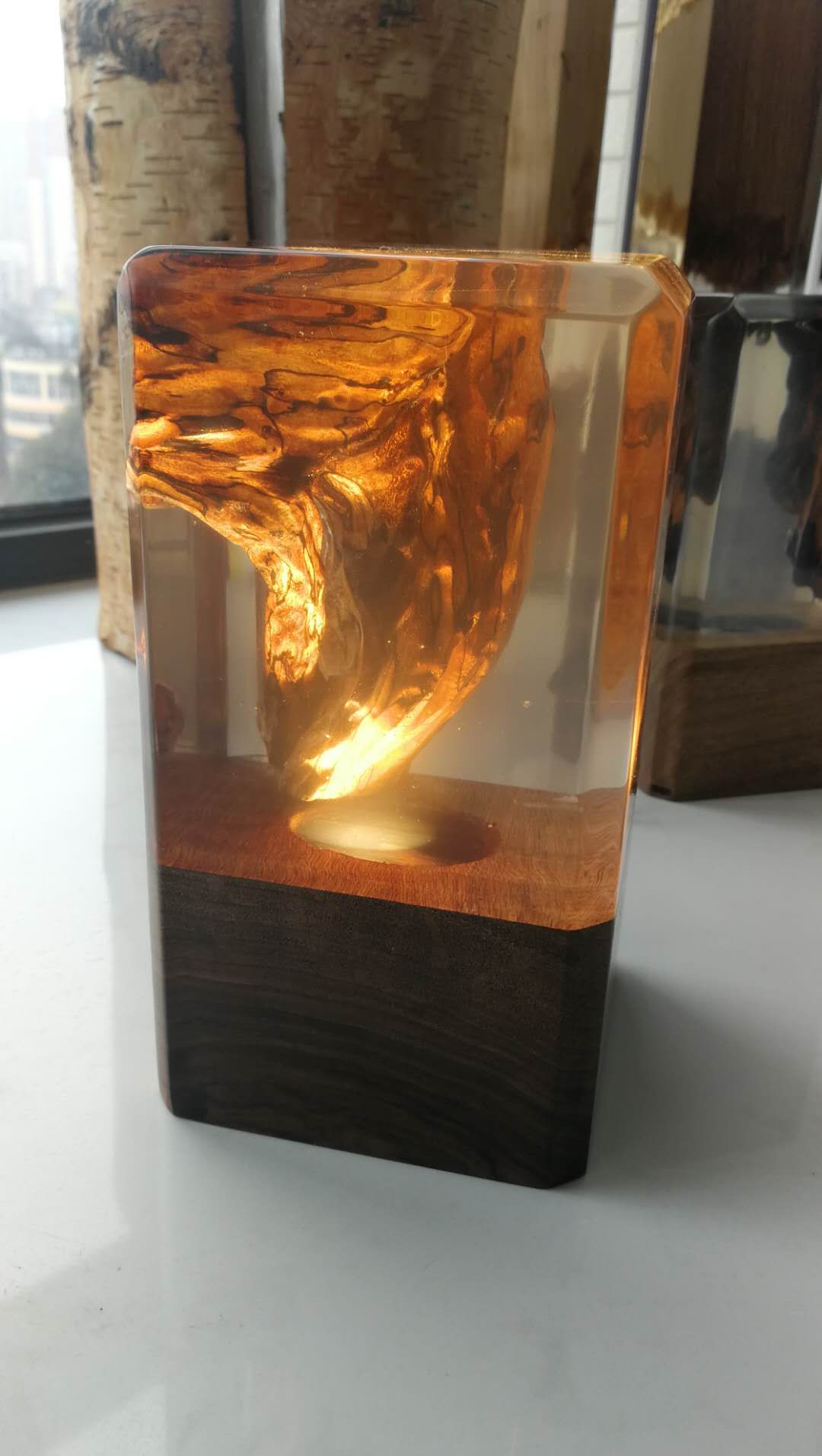 Decorative Lamp With Epoxy Resin And Wood Videoman