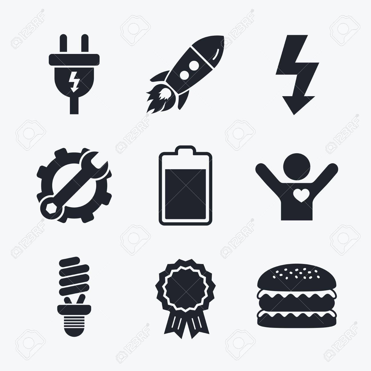 Icone De Prise Electrique Lampe Fluorescente Et Symboles De
