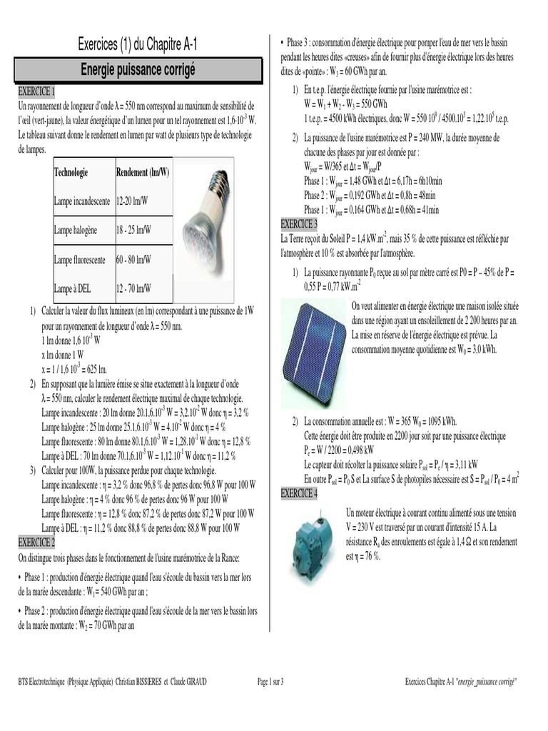 Td A11 06 Puissance Energie Corrige Puissance Physique Watt