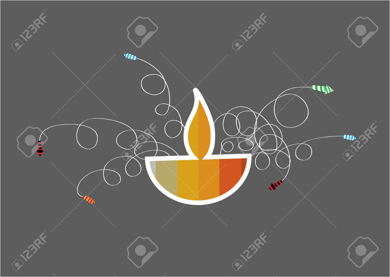Lampe A Huile Diwali Avec Feu D Artifice Isole Sur Fond Gris Clip