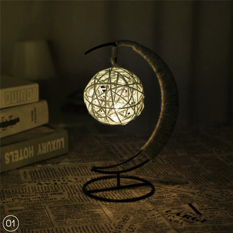 Fh Retro Globe Rattan Led String Lights Lampshade Lamp Iron Holder