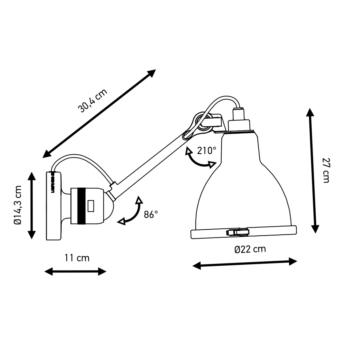Lampe Gras No304 Wall Lamp Black Body