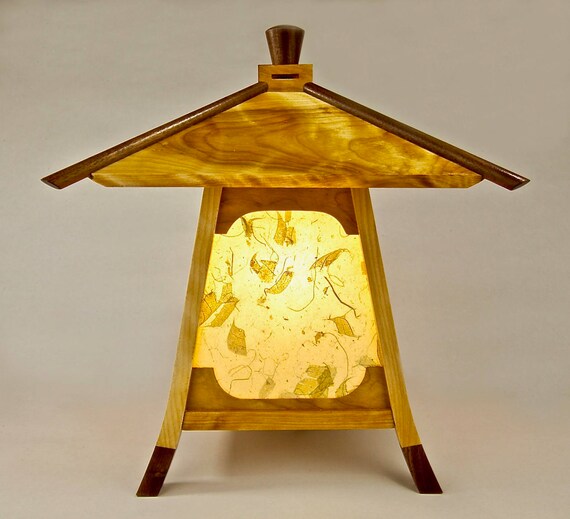 Lampe Japonaise Lanterne En Flamme Merisier Et Bois De Noyer Etsy