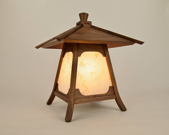 Lampe Japonaise Lanterne En Bois De Noyer Noirkodama Etsy