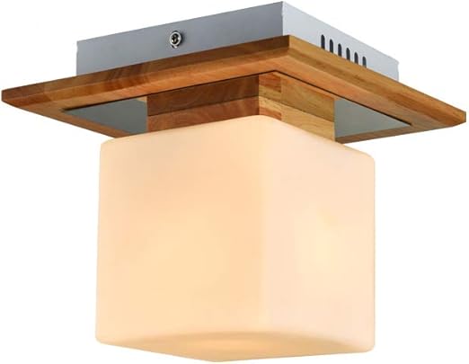 Vindeng Bois Verre Plafonnier E27 1 Lumiere Plafond Lampe Simple Style Japonais Carre Plafond Pour Couloir Foyer 20cm Amazon Fr Luminaires Et Eclairage