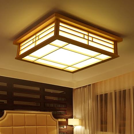 Plafonnier Moderne Contemporain Plafonniers Creatifs Lampes De Salon Simples En Bois Massif Nordique Lampe Japonaise Profitez Confortablement Taille Carre Amazon Fr Luminaires Et Eclairage