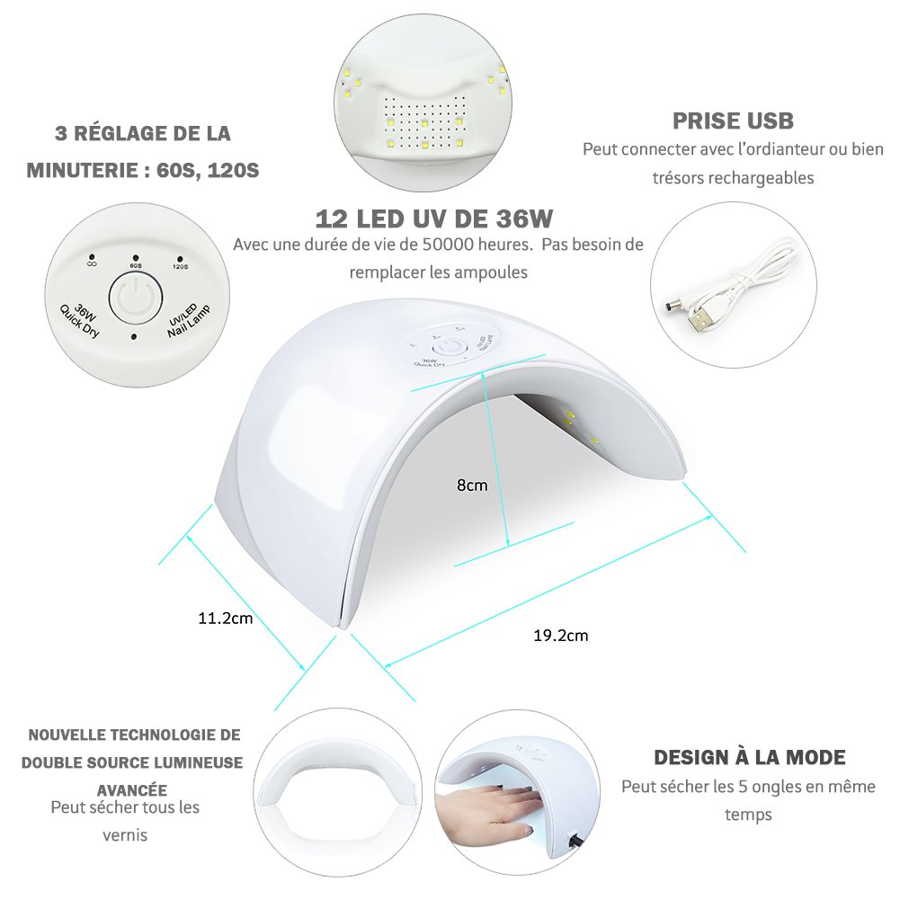 Seche Ongles Lampe Led Uv 36w Portable Avec Minuteur Blanc Achat