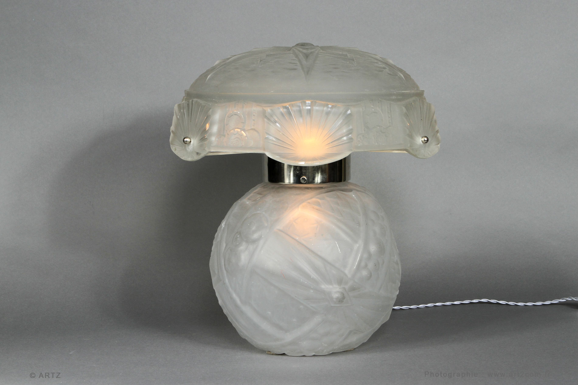 Muller Freres Luneville Lampe Art Deco En Verre Moule Presse