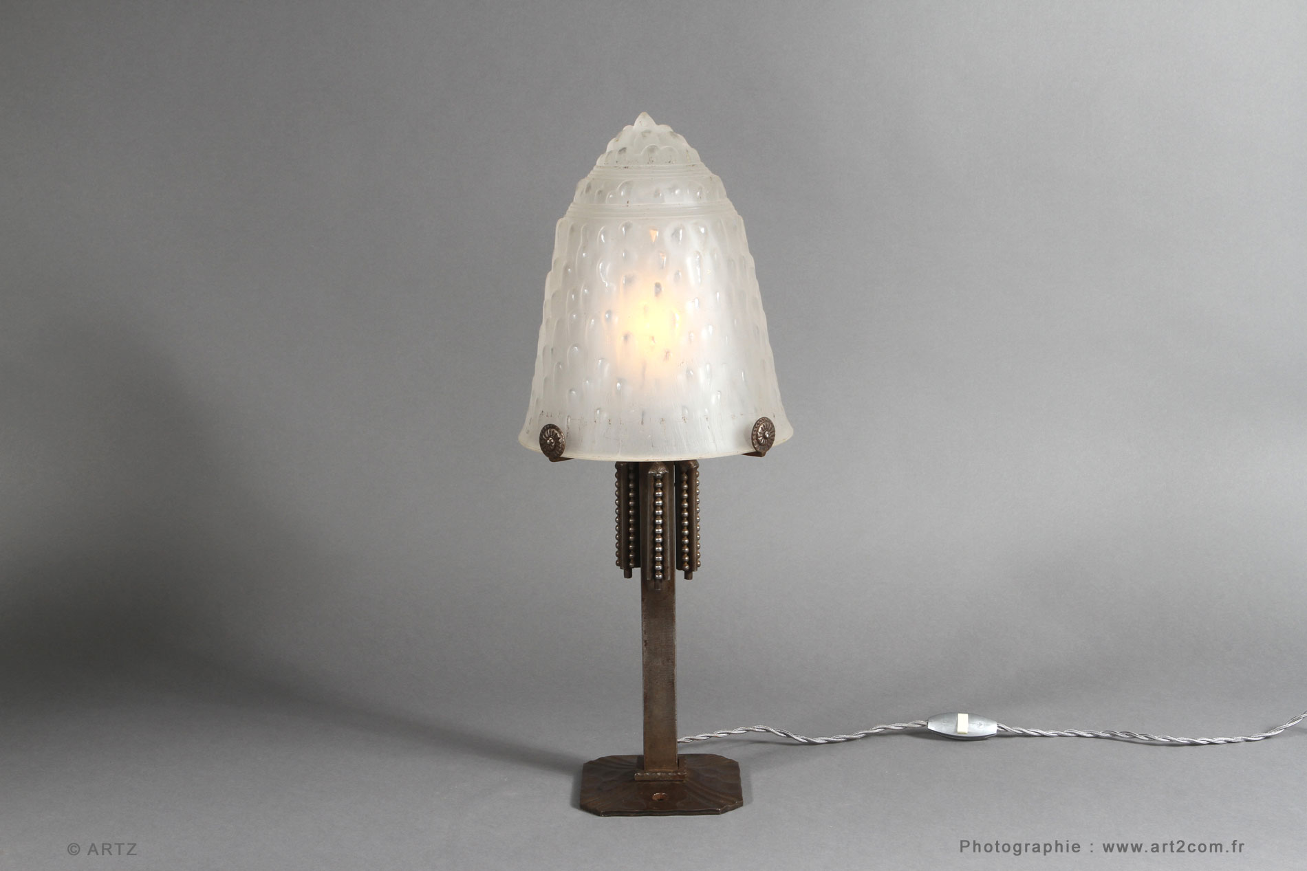 Lampe De Chevet Signee Muller Freres Luneville Art Deco Antina
