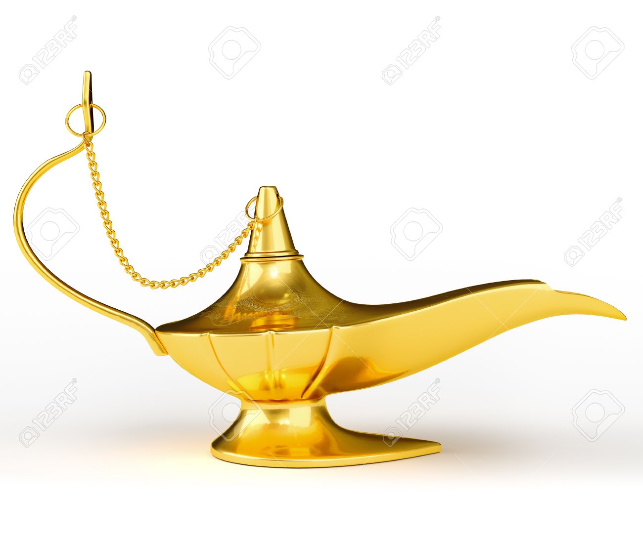 Golden Aladdin Magic Genie Lamp Isolated On White Stock Photo