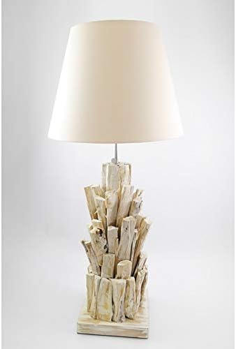 Lampe Imitation Bois Flotte Et Abat Jour Blanc Bedside Lamp