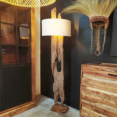 Lampadaire En Bois Flotte Et Abat Jour Blanc H159 Nirvana