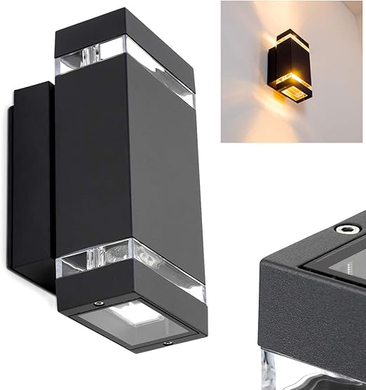 Neuf Led Ip44 Noir Exterieur Jardin Spot Point Lampe Murale Gu10