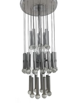 Large Chandelier In Chrome Glass By Gaetano Sciolari 1970s For