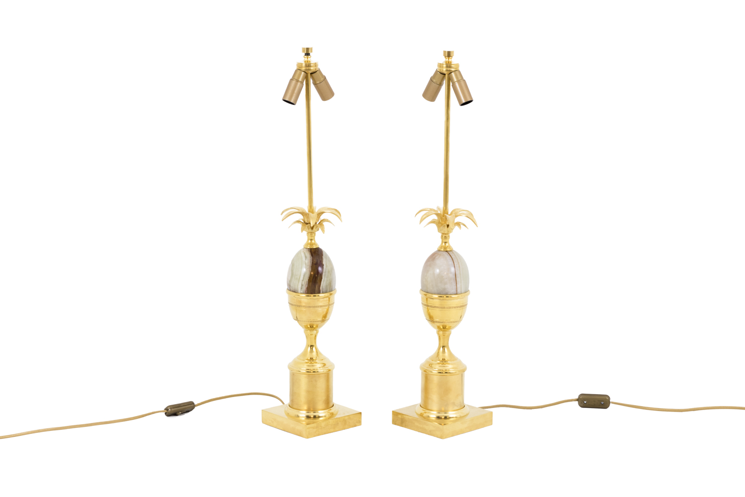 Maison Charles Paire De Lampes œuf En Onyx Et Laiton Dore Annees