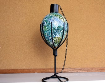Photophore En Mosaique De Verre Craquele Pour Lampe Oeuf De Table