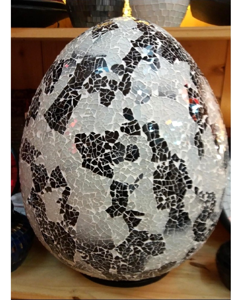 Mini Lampe Forme Oeuf Motif Mosaique En Verre Noir Et Argent