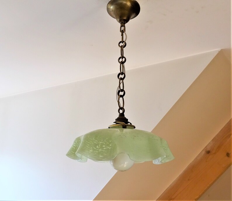Lampara De Techo Opalina Verde Anos 60 70 Lampe Opaline Verte