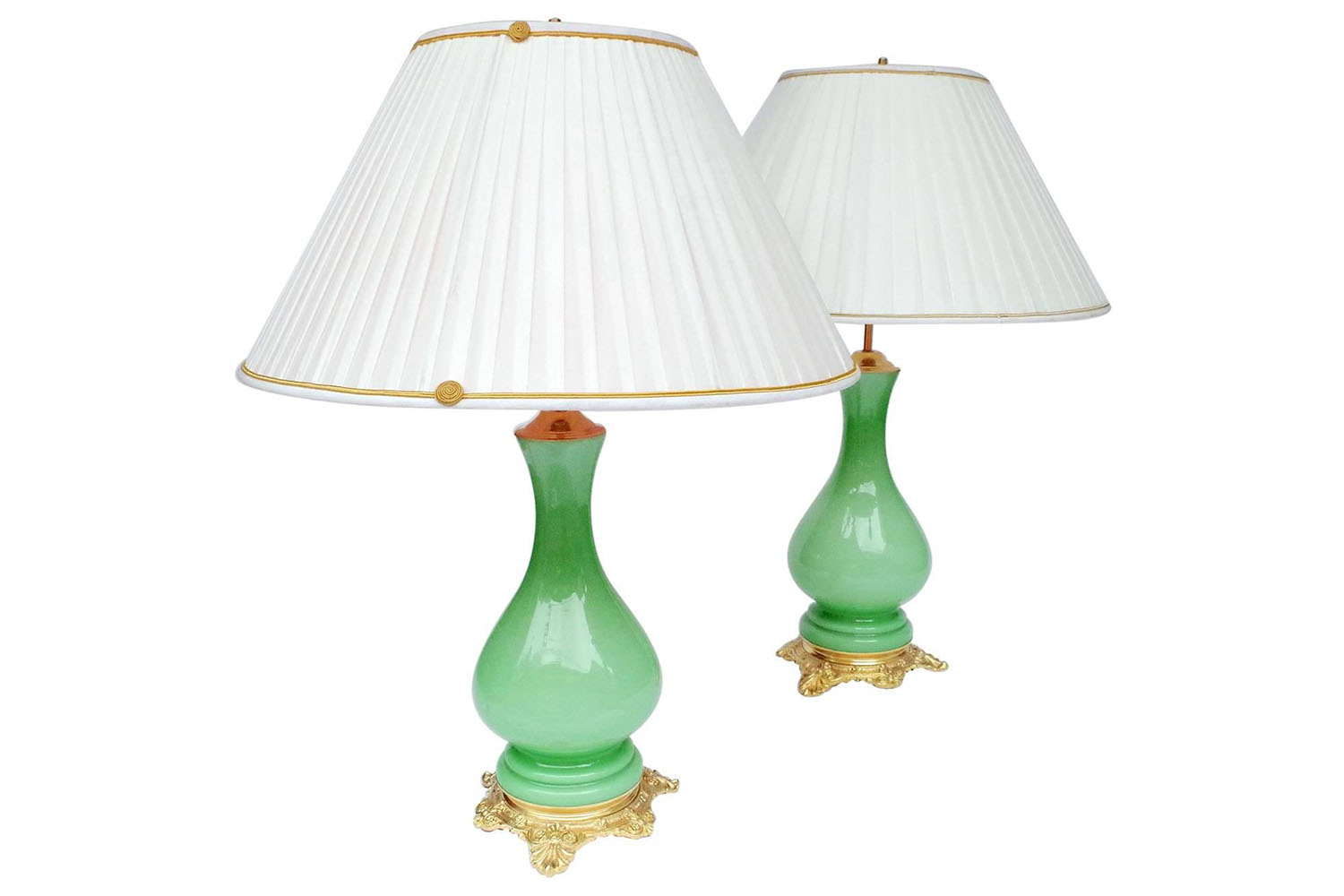 Paire De Lampe Forme Balustre En Opaline Verte Circa 1880 Lampes