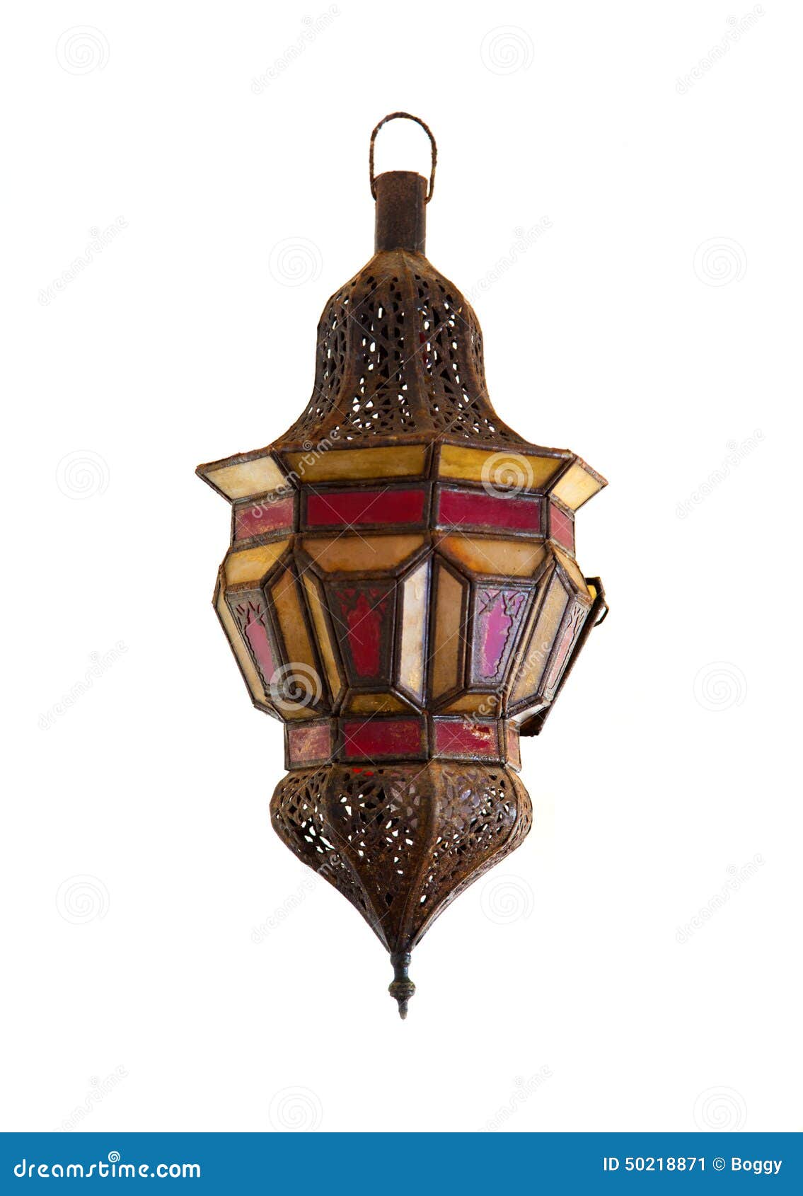 Petite Lampe Orientale Avec Le Verre Colore Sur Un Fond Blanc