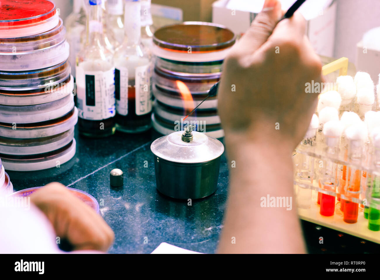 Boucle D Inoculation Microbiologique Qui Est Chauffe Dans Un