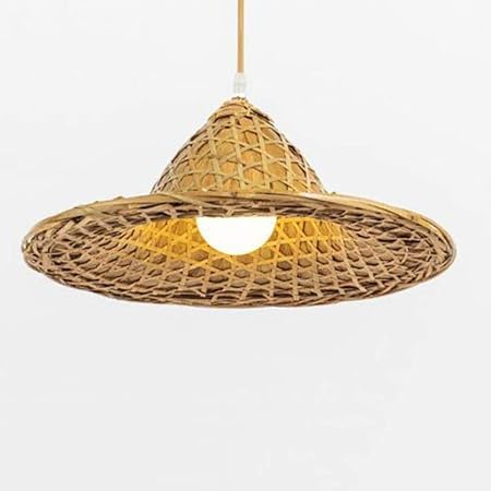 Smotly Suspension Rotin Lustre Chapeau De Paille Simple Lampe De