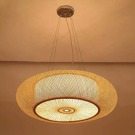 Bambou Osier Rotin Vague Ombre Pendentif Luminaire Rustique
