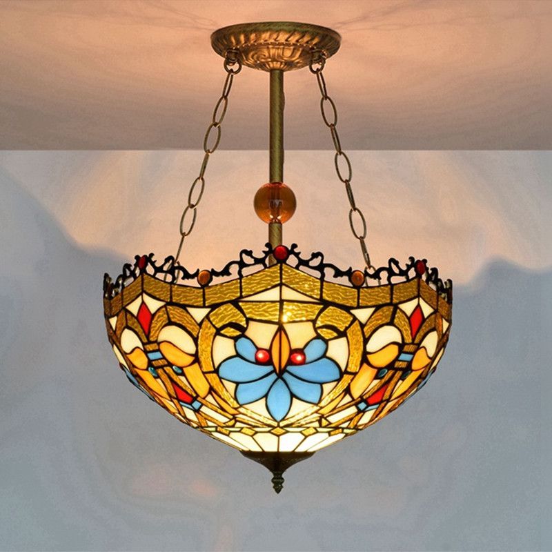 Antique Style Campagnard Tiffany Lampe Vitrail Suspension Lumieres