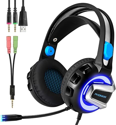 Casque Gaming Ps4 Pc Xbox One Switch Casque Gamer Avec Micro Led Lampe 3 5mm Audio Surround Stereo Basse Controle Du Volume Pour Laptop Mac Ipad Smartphone Playstation 4 Fishoaky
